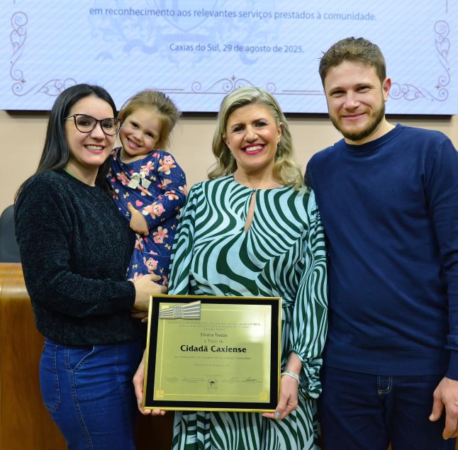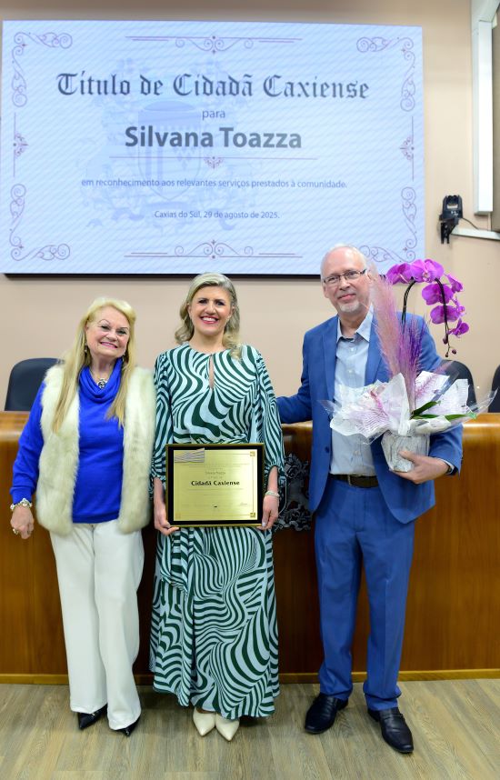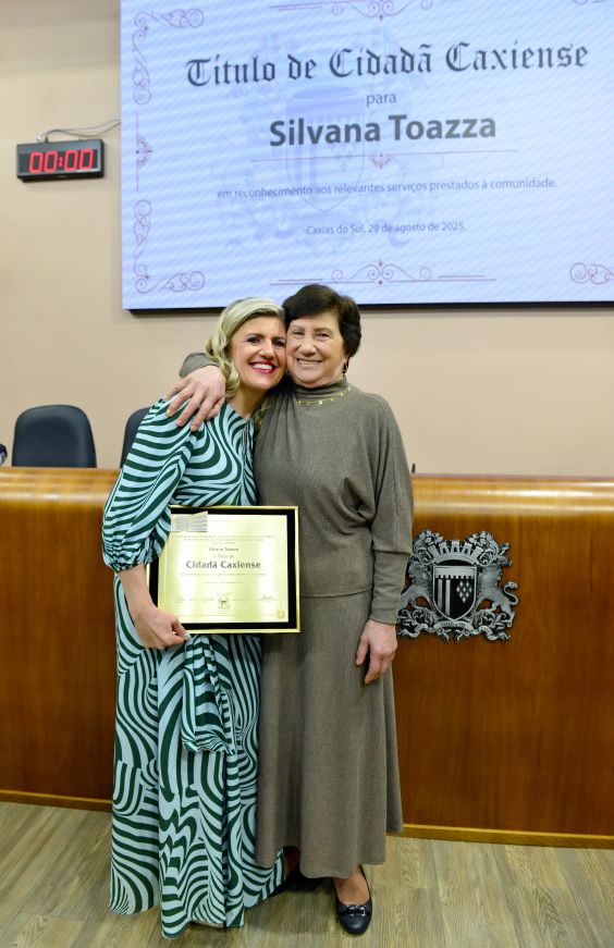 "Alguém que tem valorizado de forma impecável a história de nossa região, o desenvolvimento de Caxias do Sul e a vida de quem escolheu esse lugar para viver, morar, empreender, crescer. Eu tenho em ti, Silvana Toazza, uma inspiração. Tu és uma referência no teu trabalho, uma referência de autenticidade, algo que faz de ti uma pessoa única em energia, com vontade de fazer mais e melhor todos os dias. Que a gente possa celebrar muitas alegrias ainda, minha amiga do coração, Cidadã Caxiense. Assim como eu, Caxias do Sul te abraça, esta Casa te abraça e agradece por tanto. E obrigada por ser assim tão especial, uma filha ilustre de Nova Bassano agora com dupla cidadania", enfatizou a proponente da homenagem.