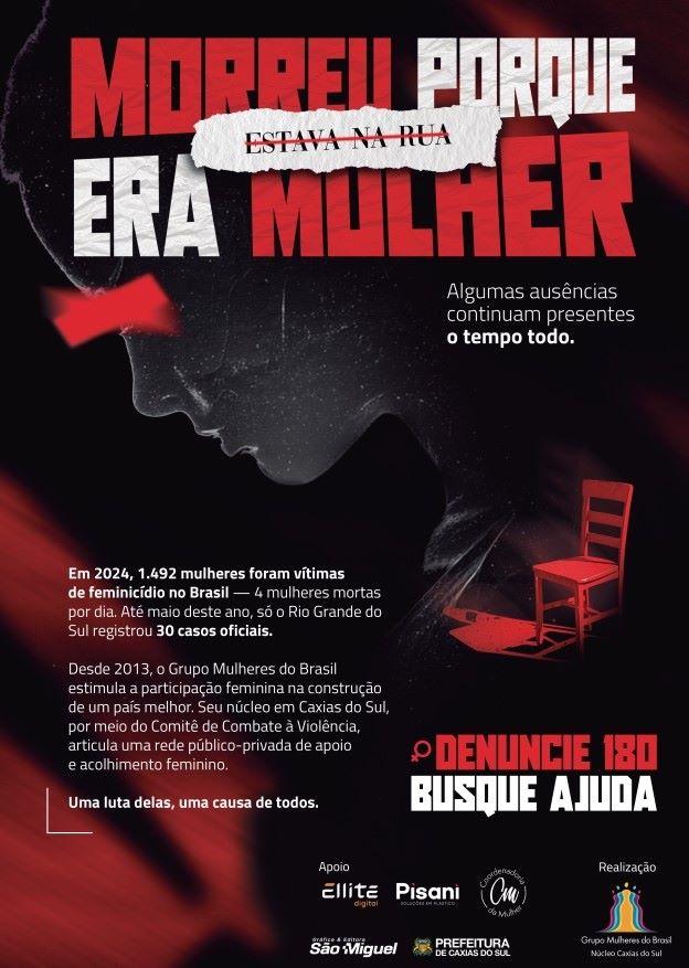 Pensando nisso, o Grupo Mulheres do Brasil – Núcleo Caxias do Sul, por meio do Comitê de Combate à Violência contra a Mulher, lança neste mês de agosto a campanha Cadeira Vazia.